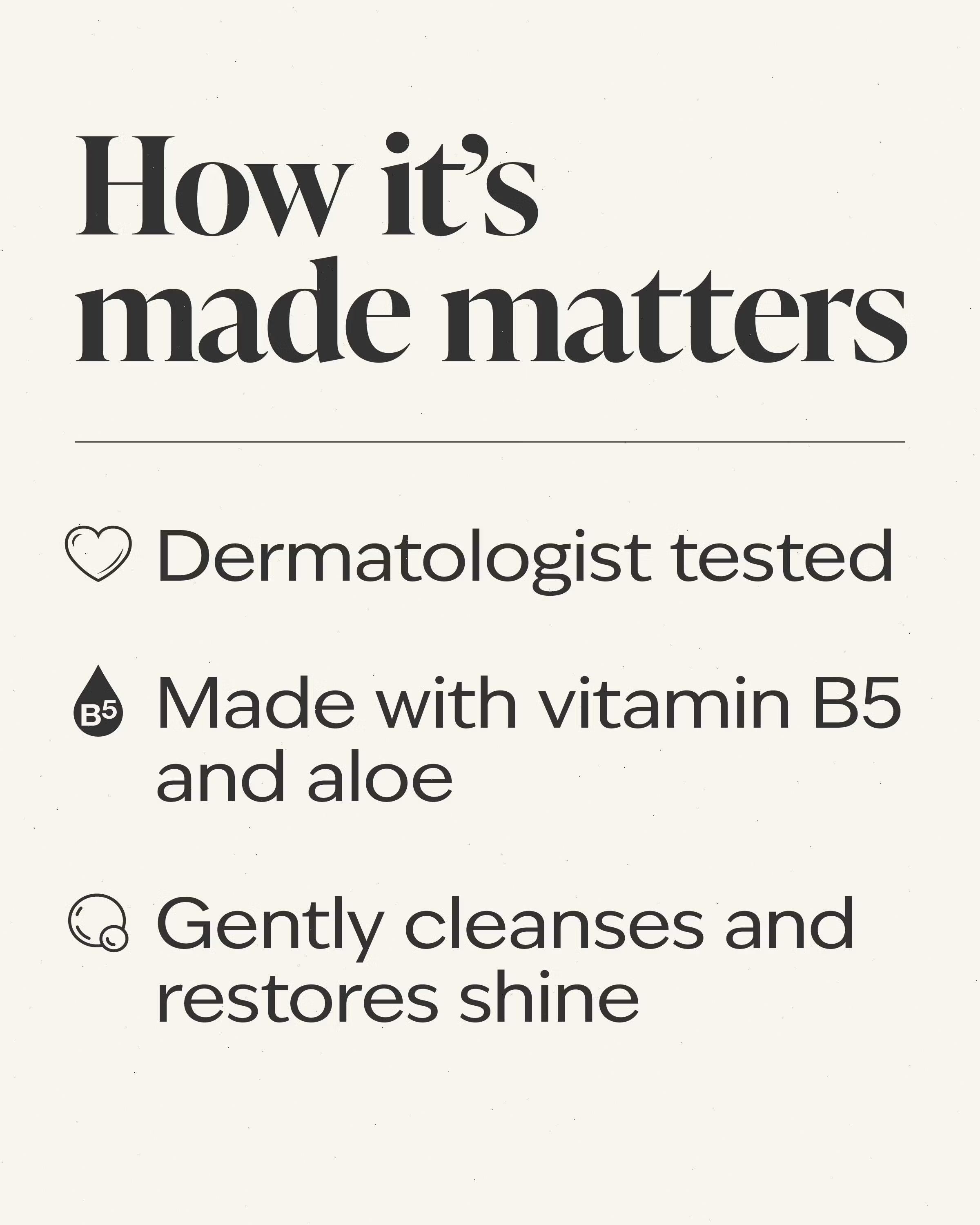 What it does: gently cleanses and restores shine.