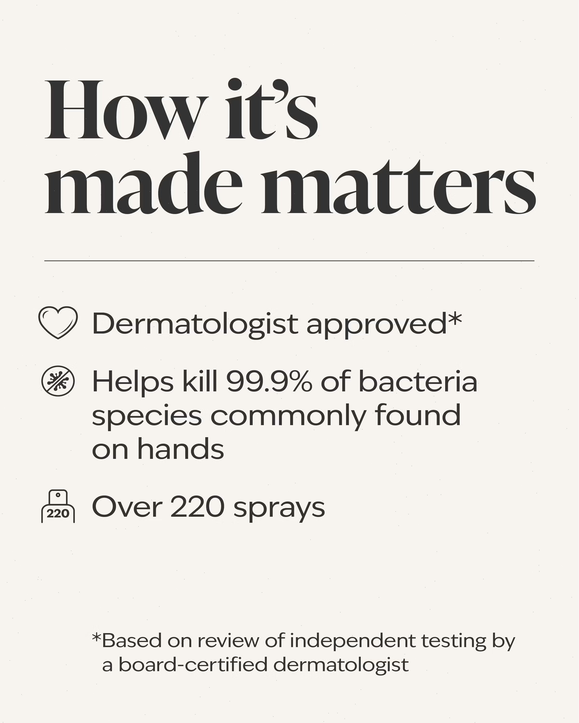 What it does: kills 99.9% of most common bacteria*.