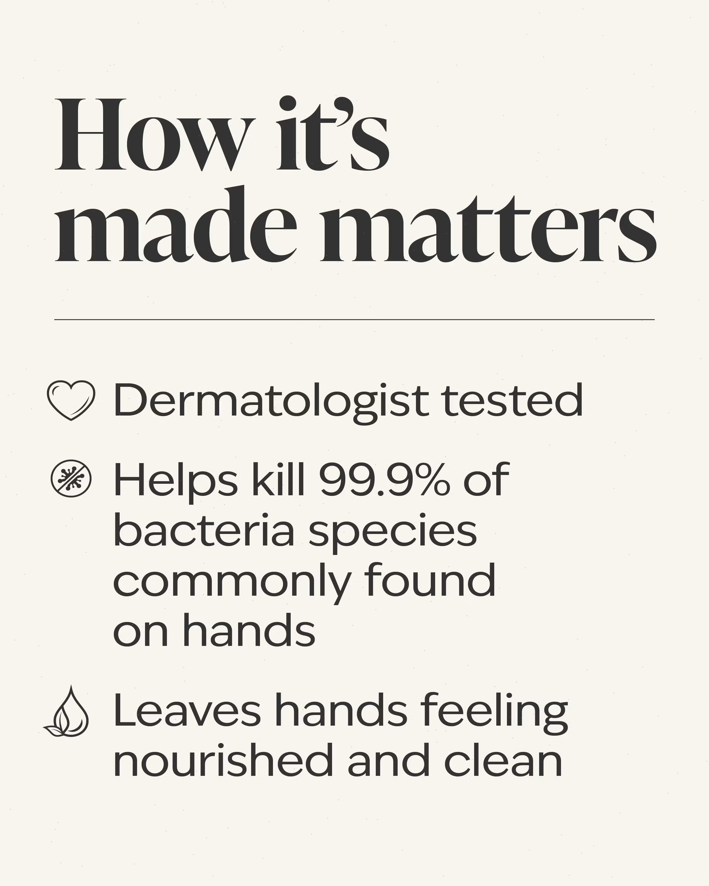 What it does: kills 99.9% of most common bacteria*.
