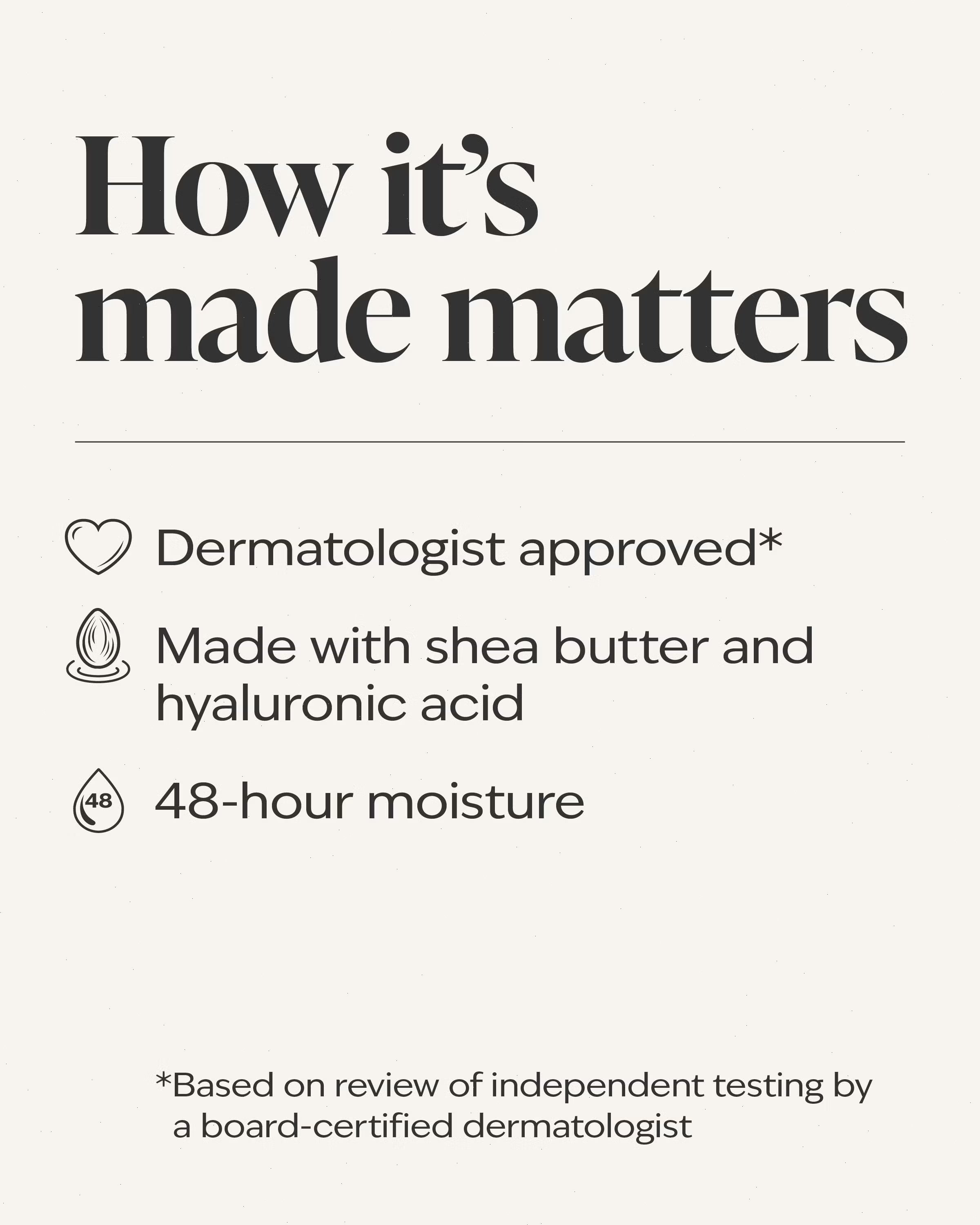 - Made with shea butter and hyaluronic acid