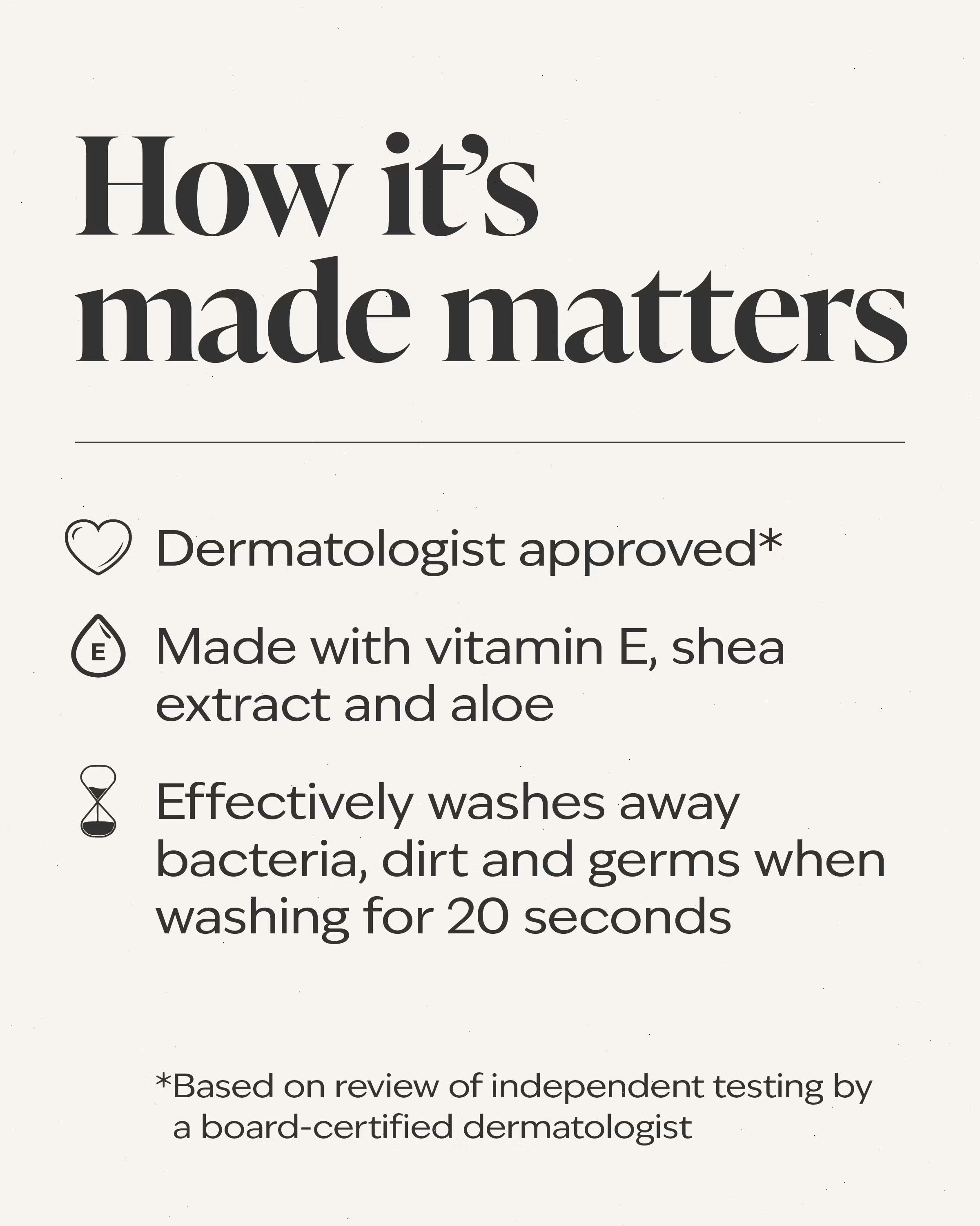 What it does: washes away germs, leaving hands feeling soft and clean.